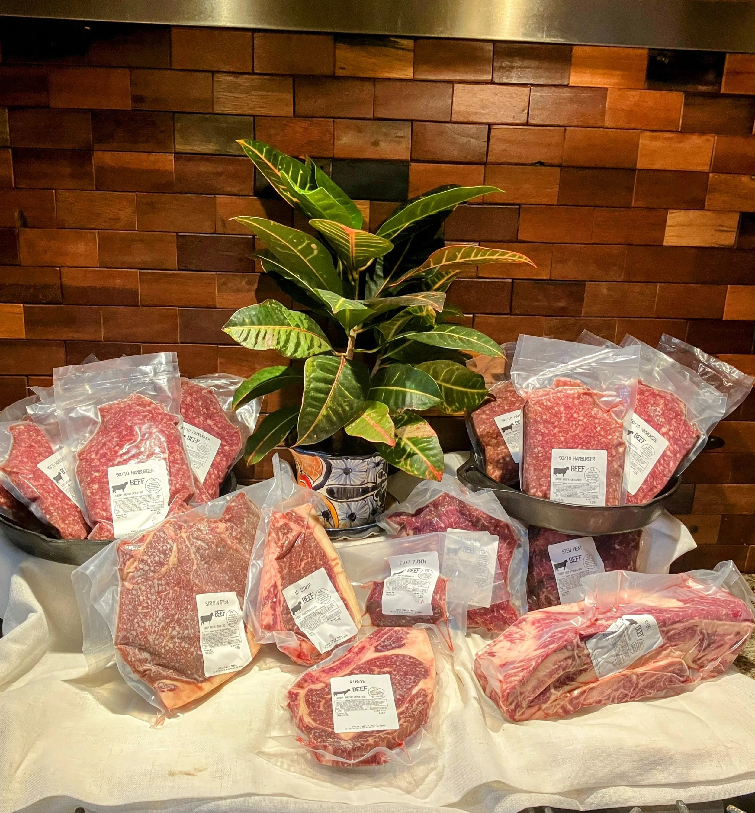 Each includes Ribeye, NY Strip, Filet Mignon, Sirloin, Brisket, Fajita meat, Cube steak, Chuck roast, Stew meat, and 90/10 ground. Ordering is simple. Choose how much you want, place your order, and enjoy fresh, healthy beef. Farm pickup or delivery.